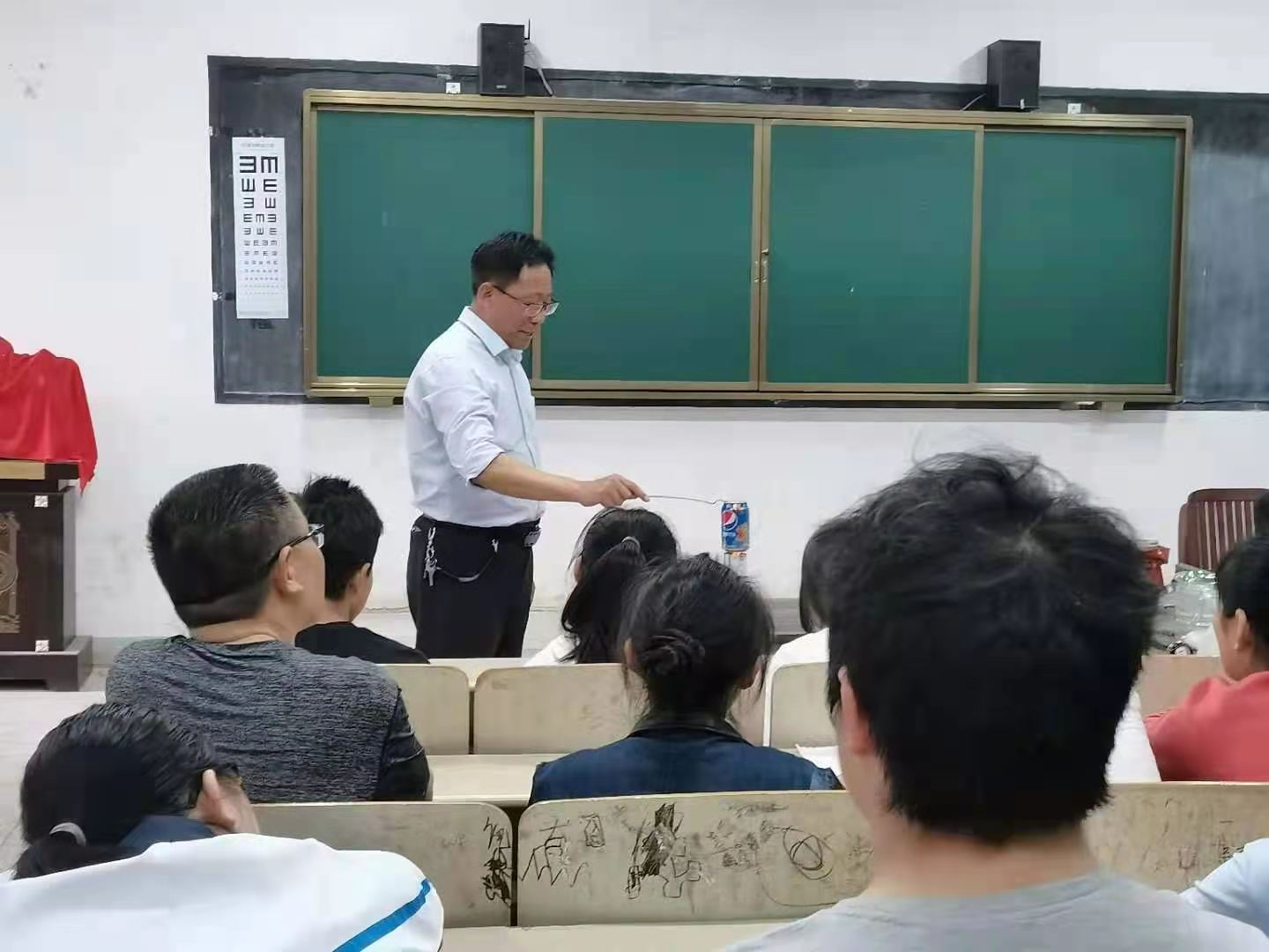 “少年强则中国强”。为培养青少年学生爱科学、学科学、用科学的学习兴趣,2021年5月11日下午,365登录_365bet现场走地盘_bet3365hk学院退休老教师吴家宽高级实验师赴365登录_365bet现场走地盘_bet3365hk学院附属中学针对初二学生开展了趣味科学实验讲座。