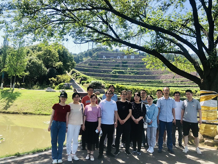随后,我们探访了舒城县“九一六茶园”。1968年,舒茶人民在毛主席指点的青岗岭高标准开辟梯式茶园,命名为舒茶九一六茶园。茶园总面积176亩,16道大坝平均长度80米,其中最长147米,梯田平均高度6米,其中最高点12.08米,开山凿石所用塘口131处,最远处有3公里,这些石块全部采用人抬车拉方式运输,完成梯田石块4万多方,回填土方80多万方,工程壮观。当地人民通过“九一六”茶园脱贫致富奔小康,形成了“自力更生、艰苦奋斗、敢为人先、铸造辉煌”的拼搏精神。我们站在毛主席当年指点青岗岭的地方,仰望气势恢弘的“九一六”茶园,感慨万千。它是领袖和人民深厚情感的结晶,是一座丰碑,也是一面镜子,我们可以从中回顾过去,看到今天,也可以展望未来!