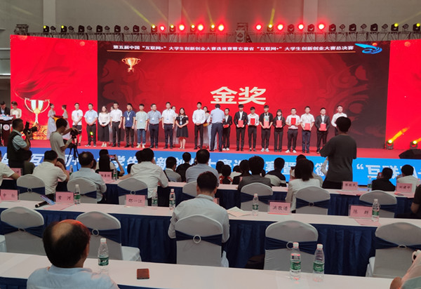 互联网+比赛的时间跨度长,在被推送到省里比赛后,已经是暑假将近有20天的休息时间,团队只休息了大概10天的时间,就重新回到了学校,进行作品的打磨。功夫不负有心人,我们的作品最终进入了比赛现场,在现场比赛的三天中,团队白天比赛,晚上聚在一起讨论修改到将近12点才休息。三天的高强度集中比赛,我们顶住压力挺了过来,付出总有收获,我们最终获得了安徽省金奖。
