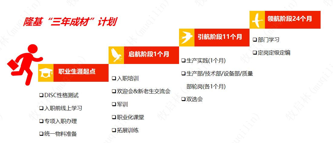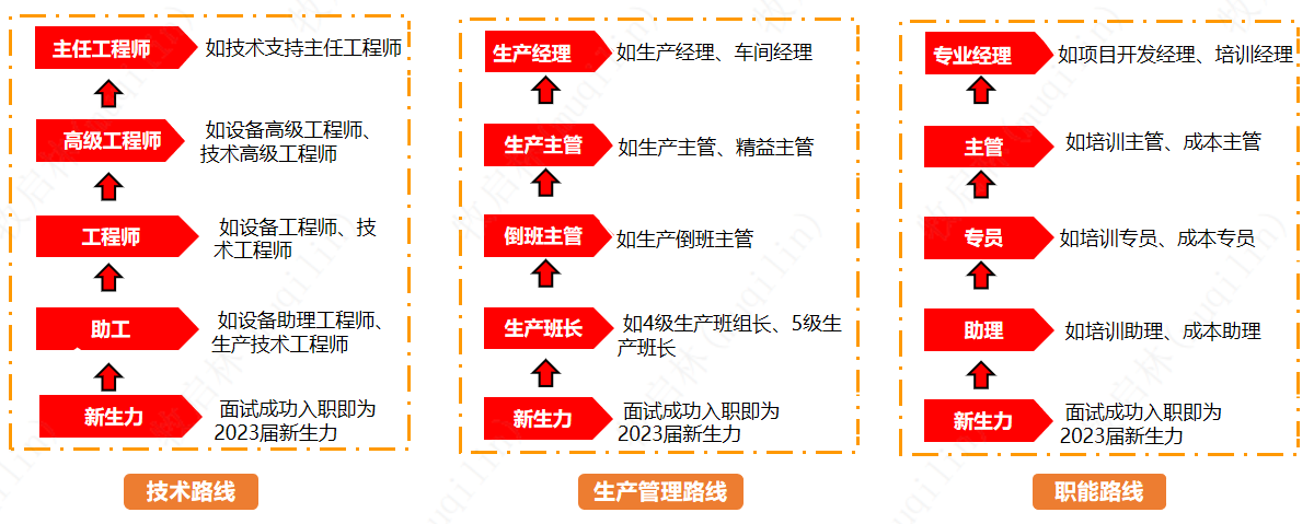 公司秉承“以人为本”的用人理念,能者上、庸者下、平者让,内部管理岗位实行竞聘上岗制,建立员工职业发展三重通道(技术路线、生产管理路线、职能路线),为优秀毕业生提供广阔的职业发展平台。