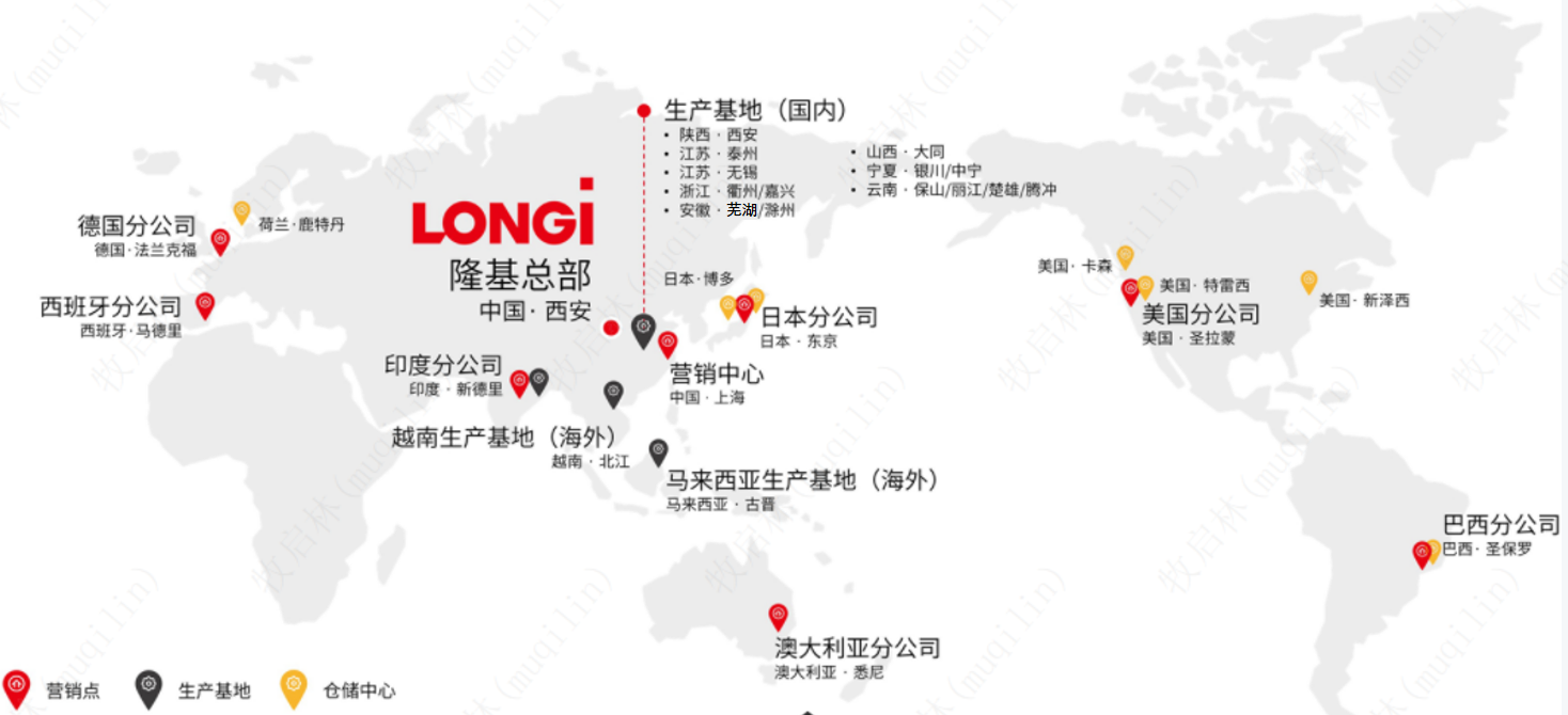 隆基绿能科技股份有限公司(简称:隆基绿能)成立于2000年,致力于成为全球最具价值的太阳能科技公司。隆基绿能以“善用太阳光芒,创造绿能世界”为使命,秉承“稳健可靠、科技引领”的品牌定位,聚焦科技创新,构建单晶硅片、电池组件、工商业分布式解决方案、绿色能源解决方案、氢能装备五大业务板块,形成支撑全球零碳发展的“绿电”+“绿氢”产品和解决方案,业务遍及全球150多个国家和地区。隆基绿能拥有7个国内产业集群,分别在云南、宁夏、江苏、陕西、浙江、安徽和山西,2个海外产业集群,古晋和越南,拥有全球员工5万余人。2021年经中国品牌建设促进会、中国资产评估协会、国务院国资委新闻中心联合评测为中国光伏行业排名第1名,中国能源化工制造业第7名,品牌价值为402.16亿元。