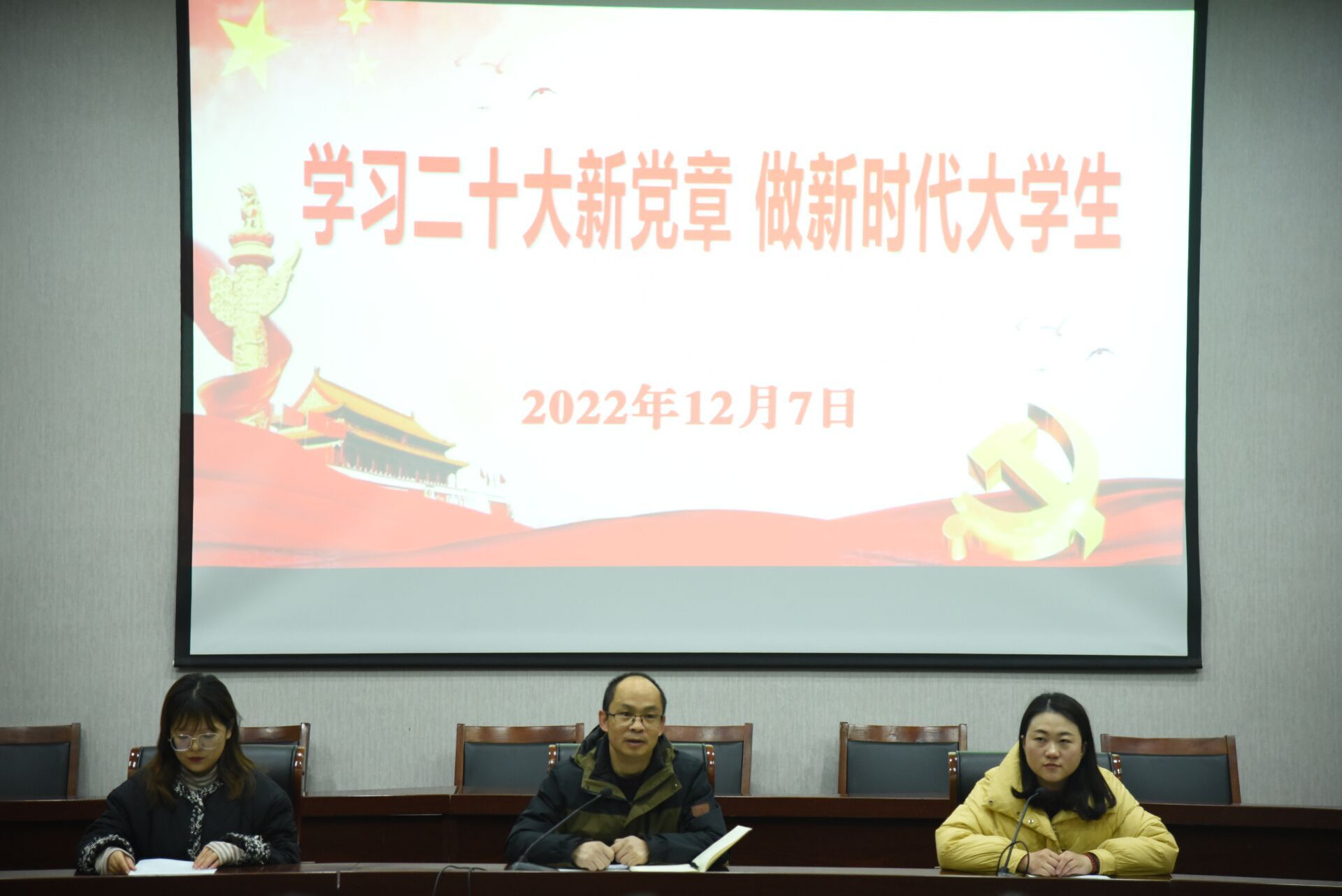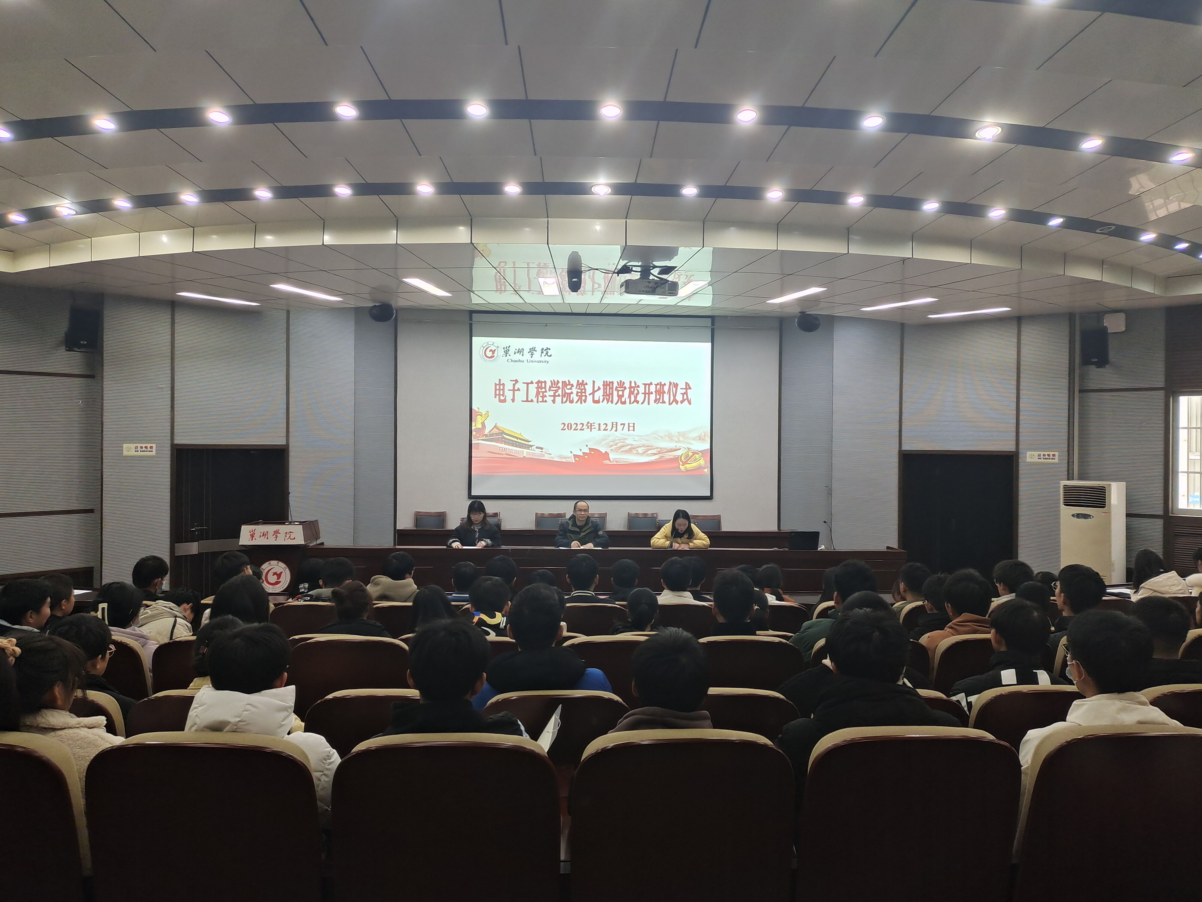 为引导入党积极分子进一步端正入党动机,切实提高大学生的政治理论素养。12月7日中午,电子工程学院于致知楼报告厅举行第七期党校开班典礼暨党的二十大精神宣讲活动。电子工程学院党委副书记孔鲲鹏、组织员兼党校班主任王静、团委副书记孙一帆以及95名入党积极分子参加开班仪式。开班仪式由王静主持。