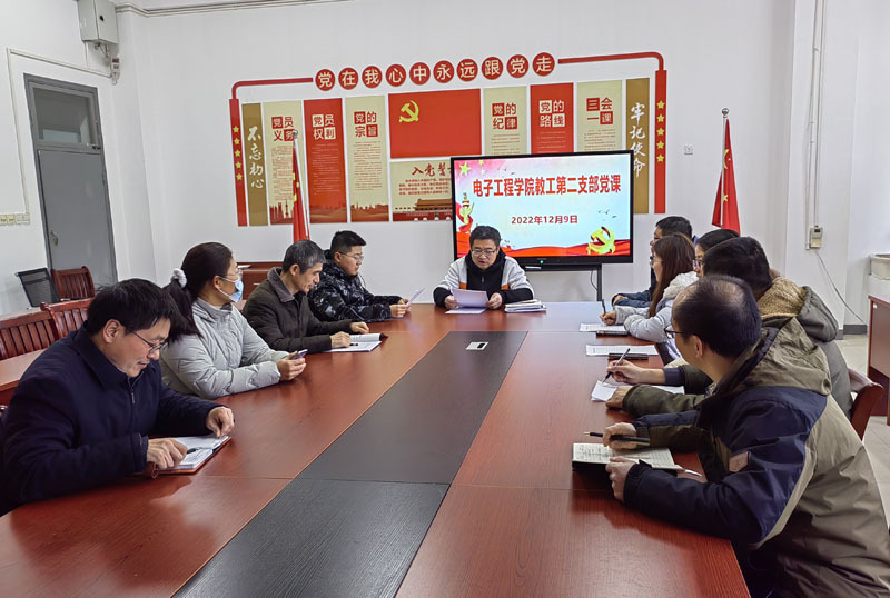 为深入学习贯彻党的二十大精神,电子工程学院教工第二党支部12月9日下午举行支部书记讲党课暨“学党章,做合格党员”主题党日活动,支部书记笪诚就新修订的《中国共产党章程》给与会党员作了解读。