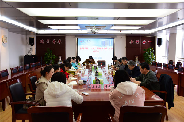 阳春三月暖,妇女半边天。为庆祝第112个“三八”国际劳动妇女节,3月8日下午,365登录_365bet现场走地盘_bet3365hk学院召开女教职工座谈会,校处级女干部代表、部分两优一先女教师、女教授代表、优秀辅导员代表、女工委委员等参加座谈会。校党委书记周峰、副校长朱定秀出席会议并讲话。校党委副书记阮爱民主持座谈会。