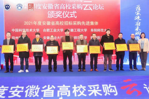 此次大会共颁发“2021年度安徽省高校招标采购先进集体”、“2021年度安徽省高校招标采购优质代理机构”和“2021年度安徽省高校招标采购先进个人”三个奖项。我校荣获“2021年度安徽省高校招标采购先进集体”。