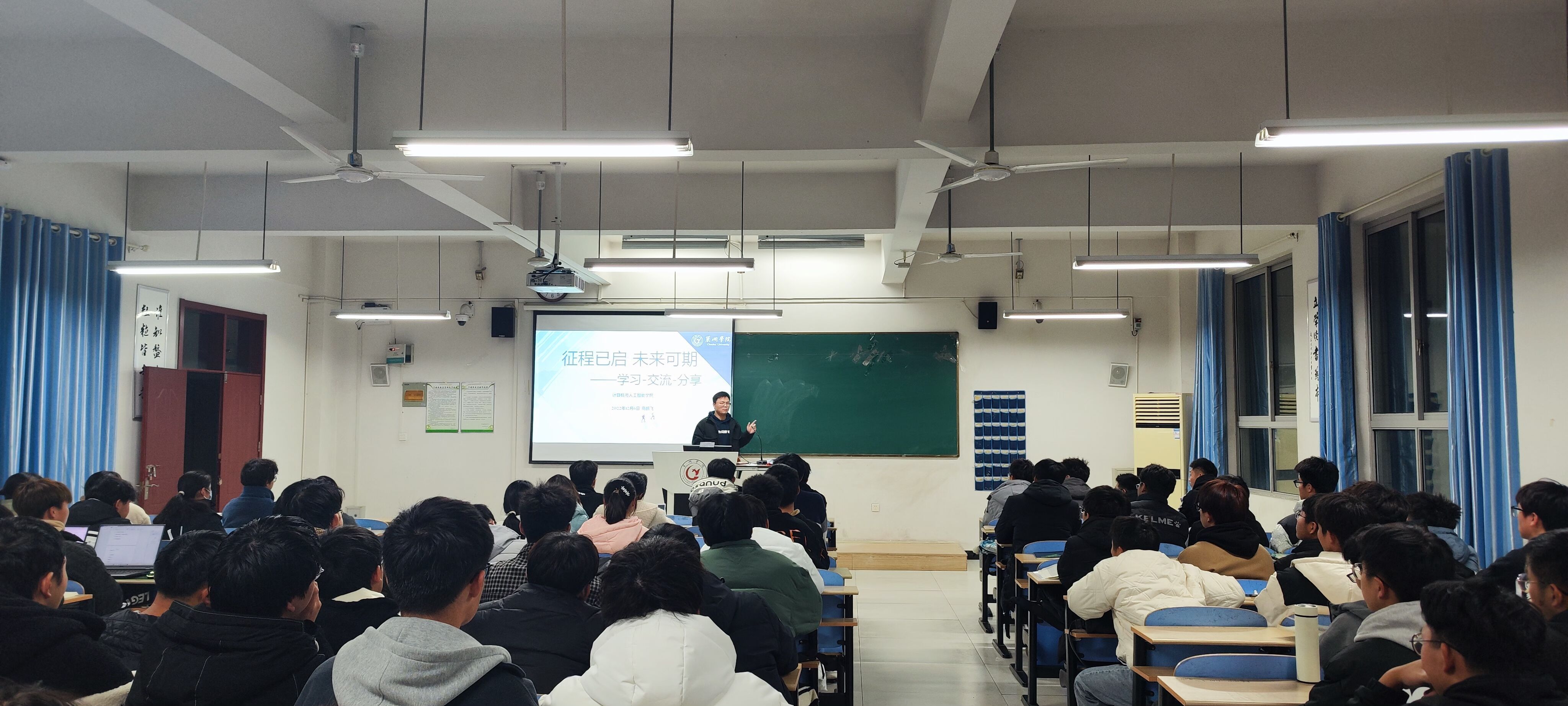 为深入学习宣传贯彻党的二十大精神,切实将学风建设工作落到实处,计算机学院于11月20日-12月8日开展了“树典型学榜样”优秀学生事迹宣讲会系列活动。宣讲会邀请了2021-2022学年国家奖学金、国家励志奖学金、校长奖学金和校一等奖学金获得者,深入到低年级各专业与同学们面对面交流、答疑解惑,助力同学们追逐榜样,合理安排学习生活。