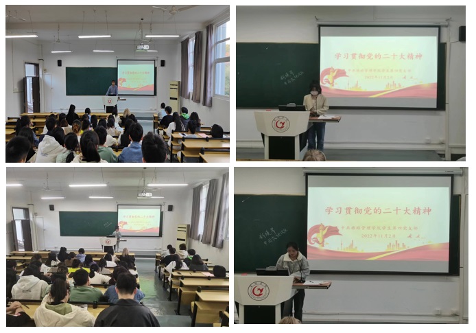 11月2日下午,旅游管理学院学生第四党支部在明德楼东阶教室开展学习党的二十大精神主题党日活动,本次主题党日活动由党支部书记黄维兵主持,支部全体党员参加。