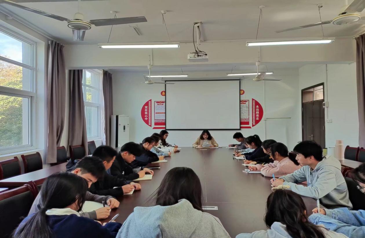 在团总支、学生会、青年志愿者协会等团学组织工作例会上,与会人员共同学习党的二十大报告,并结合自身工作交流分享学习体会和心得感悟。
