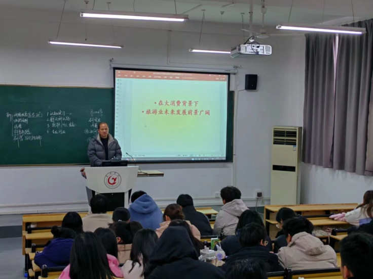 2022年12月8日上午,以“新时代旅游业态发展对旅游类大学生的择业影响”为主题的专业讲座顺利开展。本次讲座由沈德福老师主讲,旅游管理2022级学生参与了本次讲座。