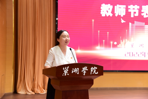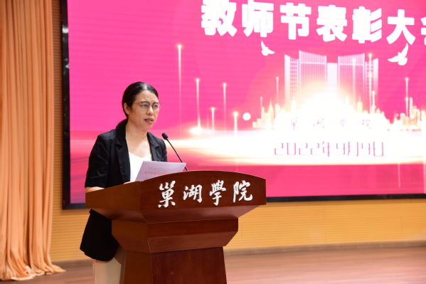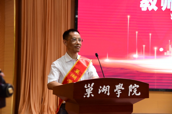 校党委书记周峰代表学校党委行政,向受表彰的教师表示热烈的祝贺。向潜心育人、默默奉献在教学、科研、管理、服务一线的全体教职工致以节日的问候。向刚刚加入巢院大家庭的新进教师表示诚挚的欢迎。向关心支持学校改革、建设和发展的老领导、老教师、老同志致以崇高的敬意。
