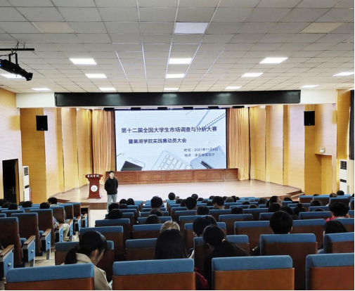 为更好地引导大学生创新和实践,提高学生的组织、策划、调查实施和数据处理与分析等专业实战能力,培养学生的社会责任感、服务意识、市场敏锐度和团队协作精神,数学与统计学院于11月9号中午一点在求实楼报告厅召开了第十二届全国大学生市场调查与分析大赛的实践赛动员大会,会议由统计学教研室主任严恒普主持,参会人员为数统学院、工商学院、信工学院、经法学院等学院的254名参赛学生。