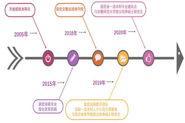 基于OBE教学理念,结合国家专业类教学质量标准,制定社会体育指导与管理专业人才培养方案和课程标准。注重课程建设,已有省级线上线下混合课程、精品线下开放课程等7门次,校级各类课程8门次,校本教材1门次,有力保障了人才培养质量。注重实践教学平台建设,2018年获省教育厅批复成立安徽排球学院,2021年获省教育厅、民委、体育局批复成立安徽省少数民族传统体育训练基地。深化校企合作,与安徽德仁名流体育运动服务有限公司、合肥魅加唯源教育咨询有限公司、上海呈康体育发展有限公司等企业合作,以保障实训、实习等实践教学效果。