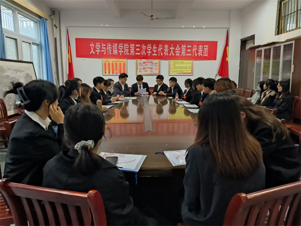 开幕式后,按照会议日程召开了文传学院第三次学生代表大会第一次全体会议、各代表团分团会议、第二次全体会议。文传学院学生会主席团候选人程皖燕代表学院第二届学生委员会作了题为《砥砺前行传薪火 锐意进取绘新篇 为加快建成特色鲜明的地方应用型高水平大学贡献青春力量》的工作报告,全面回顾过去一年学生会开展的各项工作,反思学生会工作中存在的不足。她表示文传学院学生会将以更加昂扬的精神状态、勤奋的学习态度、务实的工作作风砥砺新征程,建功新时代。