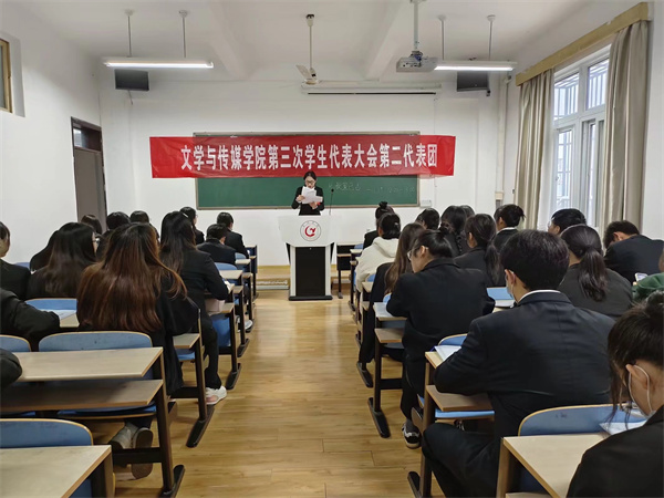 开幕式后,按照会议日程召开了文传学院第三次学生代表大会第一次全体会议、各代表团分团会议、第二次全体会议。文传学院学生会主席团候选人程皖燕代表学院第二届学生委员会作了题为《砥砺前行传薪火 锐意进取绘新篇 为加快建成特色鲜明的地方应用型高水平大学贡献青春力量》的工作报告,全面回顾过去一年学生会开展的各项工作,反思学生会工作中存在的不足。她表示文传学院学生会将以更加昂扬的精神状态、勤奋的学习态度、务实的工作作风砥砺新征程,建功新时代。