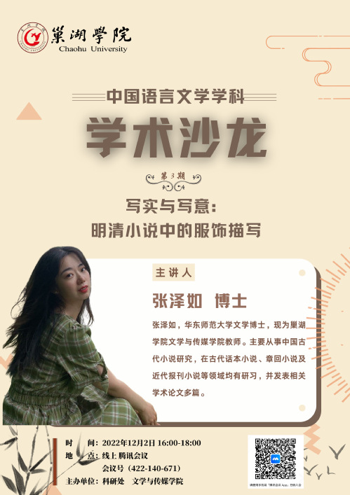 【中国语言文学学术沙龙(第3期)】写实与写意: 明清小说中的服饰描写