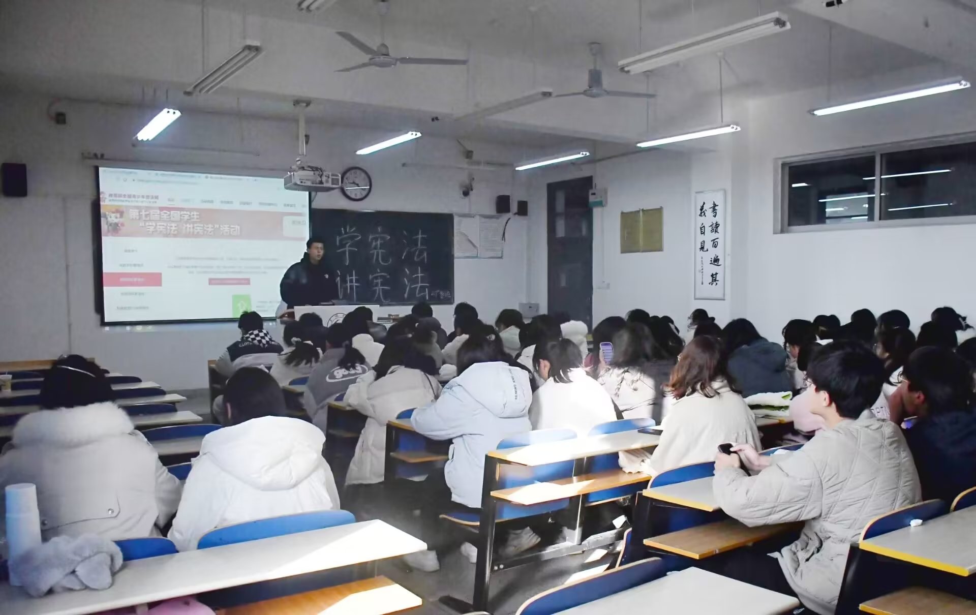 为进一步开展宪法教育,加强对宪法的学习、宣传,全面提升同学们的宪法意识和法治素养,树牢宪法信仰,12月2日上午,文学与传媒学院组织60余名学生干部在博学楼306教室开展“学宪法 讲宪法”主题活动。