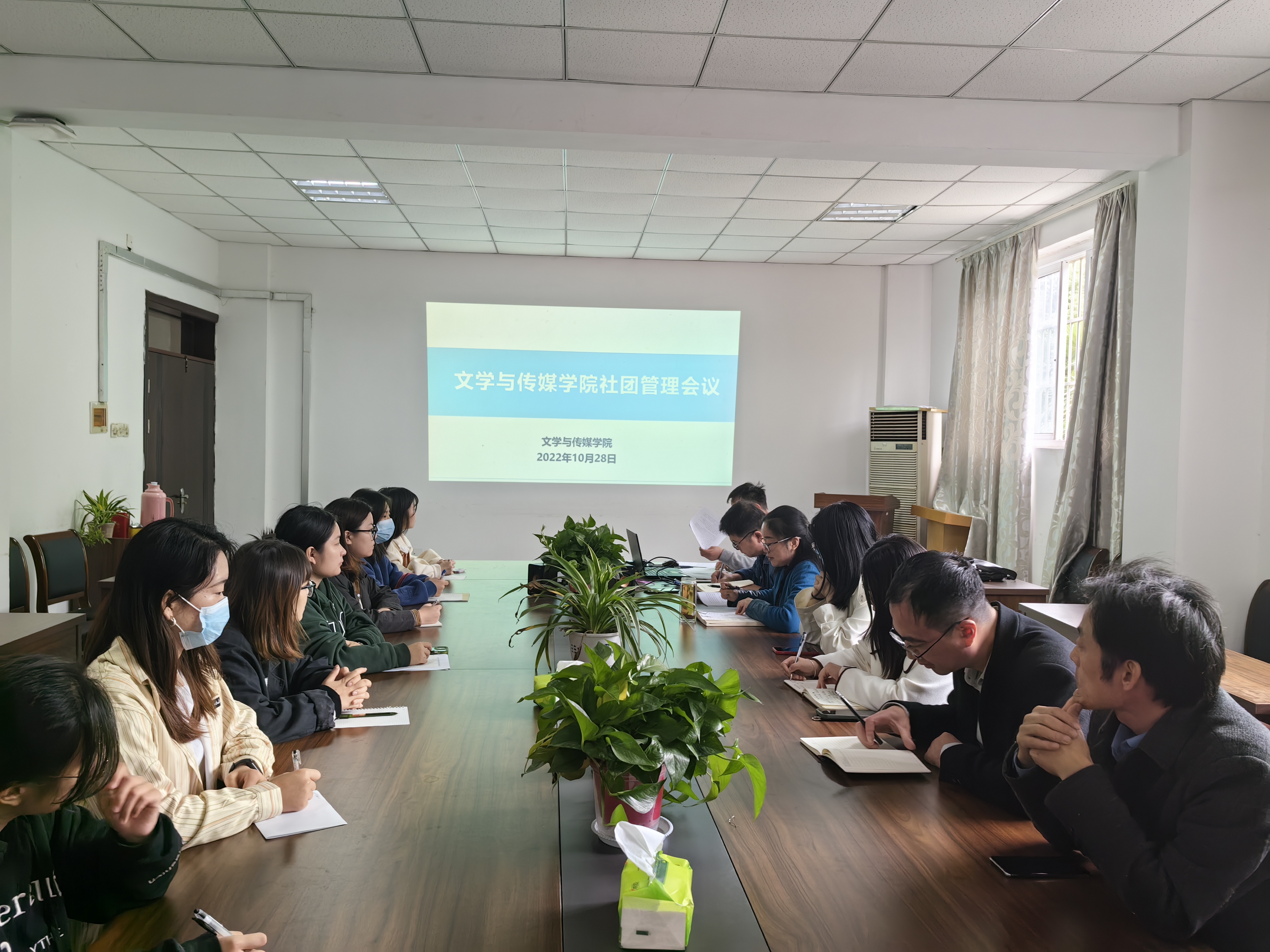 为更好地加强文传学院学生社团内部建设,增强其凝聚力,提升其工作质量,10月28日中午,文传学院在学院会议室召开社团管理人员会议,院党委书记袁凤琴与副书记孙冰出席会议,学院六个社团指导老师及社长全员与会。