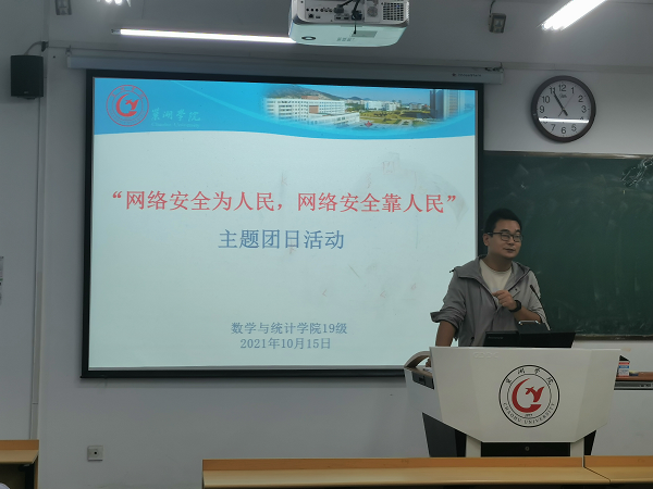 由辅导员老师在10月中旬带领同学们开展“网络安全为人民,网络安全靠人民”主题团日活动。以学习习近平总书记关于网络强国战略思想与总体国家安全观、《中华人民共和国网络安全法》以及结合365登录_365bet现场走地盘_bet3365hk学院网络安全宣传专题网中相关案例,介绍如何避免网络安全问题,如何防范网络诈骗,倡导同学依法文明上网,营造安全、健康的网络环境。