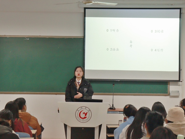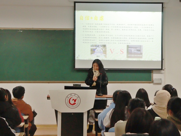 会议伊始,李玲围绕三位优秀学子的学习经历和获奖情况进行了详细的介绍,随后三位同学分别进行分享。国家奖学金获得者王景从大学生应有的学习态度着手,她强调,英专生应当在专业方面下功夫,课前预习课后复习,保持良好的作息,积极参与学科竞赛,充实提高自己。学院徽傲奖学金获得者张琴鼓励大家积极参与学生组织,增强综合素质,同时分享了专四的学习方法和各类学科竞赛的备赛历程。国家奖学金、学院徽傲奖学金获得者吴芫着重强调了列计划和做笔记的重要性,同时对全国大学生英语竞赛和外研社等比赛的准备过程进行了详细讲解,她建议新生提前制定职业规划,多方面提升自我。
