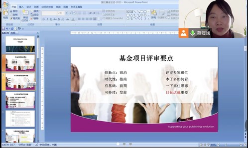 慕媛媛从项目评审要点、题解撰写、项目书撰写思路和表述等方面,对此次外国语学院教师的申报书进行了详细的点评。