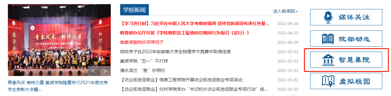 第一步:用户访问学校主页(https://www.ndzzjw.com),点击“智慧巢院”;
