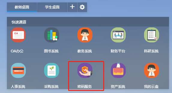 第二步:进入“智慧巢院”后,在“快速通道”栏目点击“密码服务”图标;