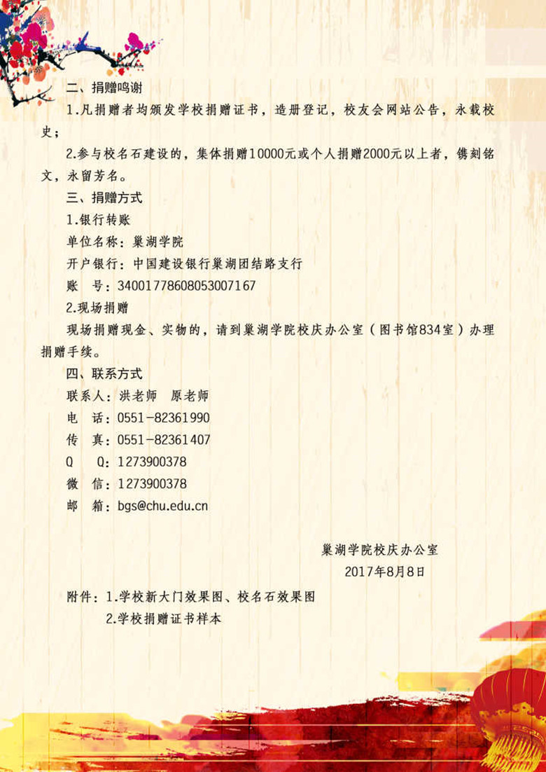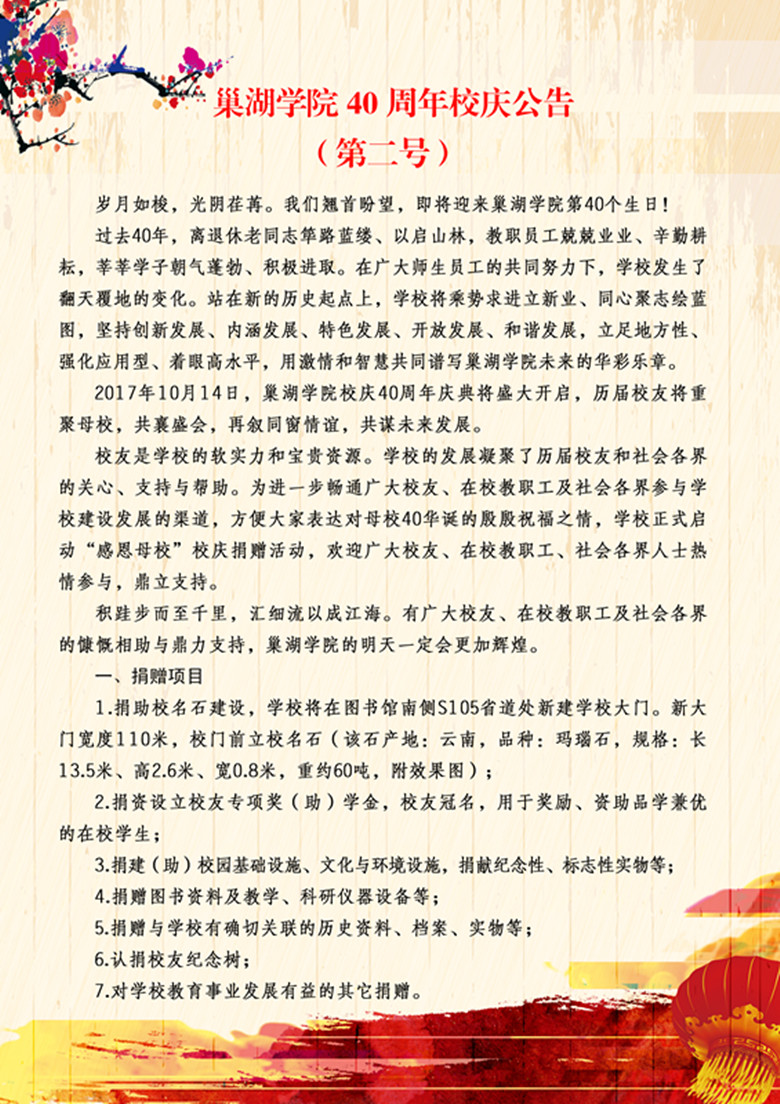 校庆致谢
