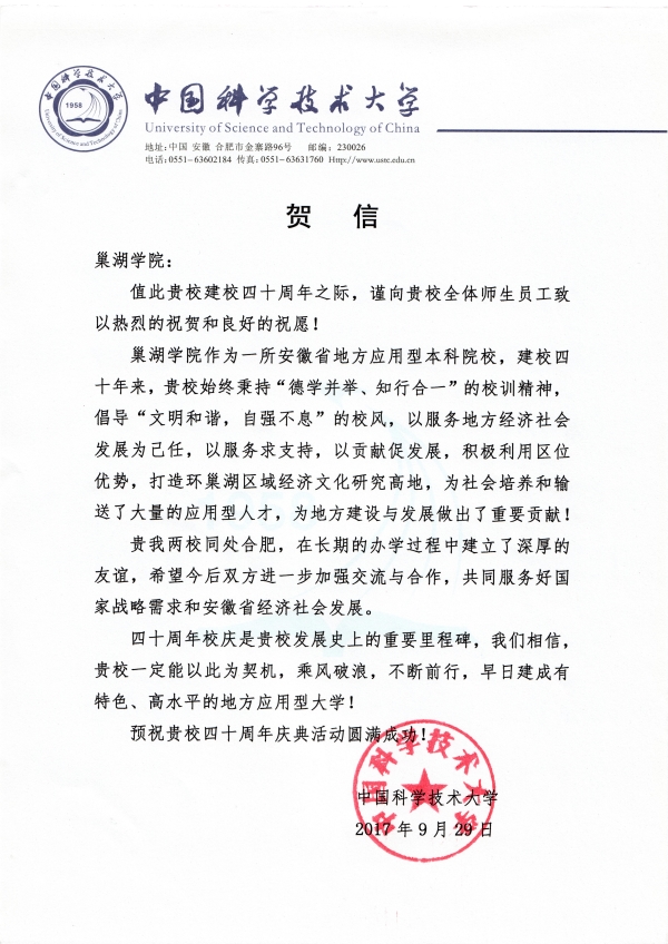 中国科学技术大学贺信