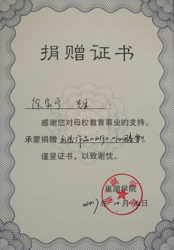 78级英语班校友徐家宁捐赠书法作品《山行》、《沁园春·雪》